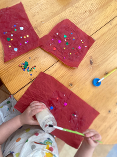 Može im biti zanimljivo slikanje vodom i četkicom po kamenčićima, papirima u boji, po pločicam na terasi...