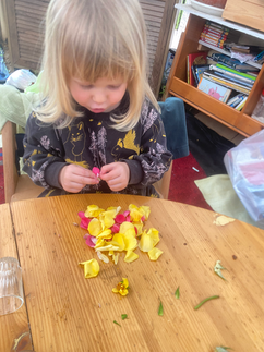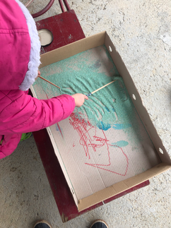 u prvoj godini odrastanja, medju ostale igračke, stavili smo i bojice. To su bile stare, drvene, već dosta kratke bojice, koje je naša ćerka razbacivala okolo, grickala i njima bockala druge stvari. Pokazali smo joj, naravno, kako se njima boji, ali to nije bilo zanimljivo sve do negde 18 ili 20 meseci. Sa nekih 18 meseci je tražila da drži i koristi makaze jer je nas videla da ih koristimo. Dali smo joj dečije makaze, uz obavezan nadzor, i vrlo uporno je pokušavala da ih koristi seckajući papire, najčešće u početku nje uspevala, jer joj je bilo teško da drži i spoji makaze, ali je bila uporna. Makaze su i dalje sa njene 4 godine prilično omiljen alat. Makaze joj sigurno ne bih ponudila toliko rano da nije pokazala toliki interes za njih. otprilike u isto vreme smo ponudili vodene boje ali to nije bilo mnogo interesantno sve do skoro treće godine, sada u četvrtoj godini često sama traži da slikamo. Koristimo uglavnom vodene boje a nekada i tempere, kada sam posebno raspoložena za brljanje. Testo za igru sam počela da joj pravim nekada pre pune 2 godine. To je uvek zabavna igra. I sve varijacije na ovaj materijal- play dough, plastelin, kinetički pesak, su, jednostavno, neprevazidjene.
